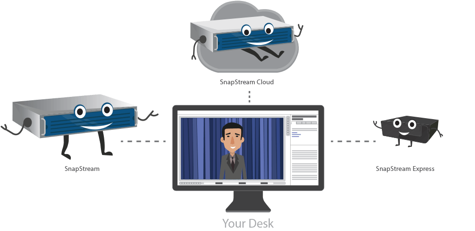SnapStream is a DVR for business. Plug in your cable, satellite, or antenna TV source. Schedule TV recordings. Then search inside your TV recordings using closed captioning. Share TV moments to Twitter and Facebook. And SnapStream makes it all easy.